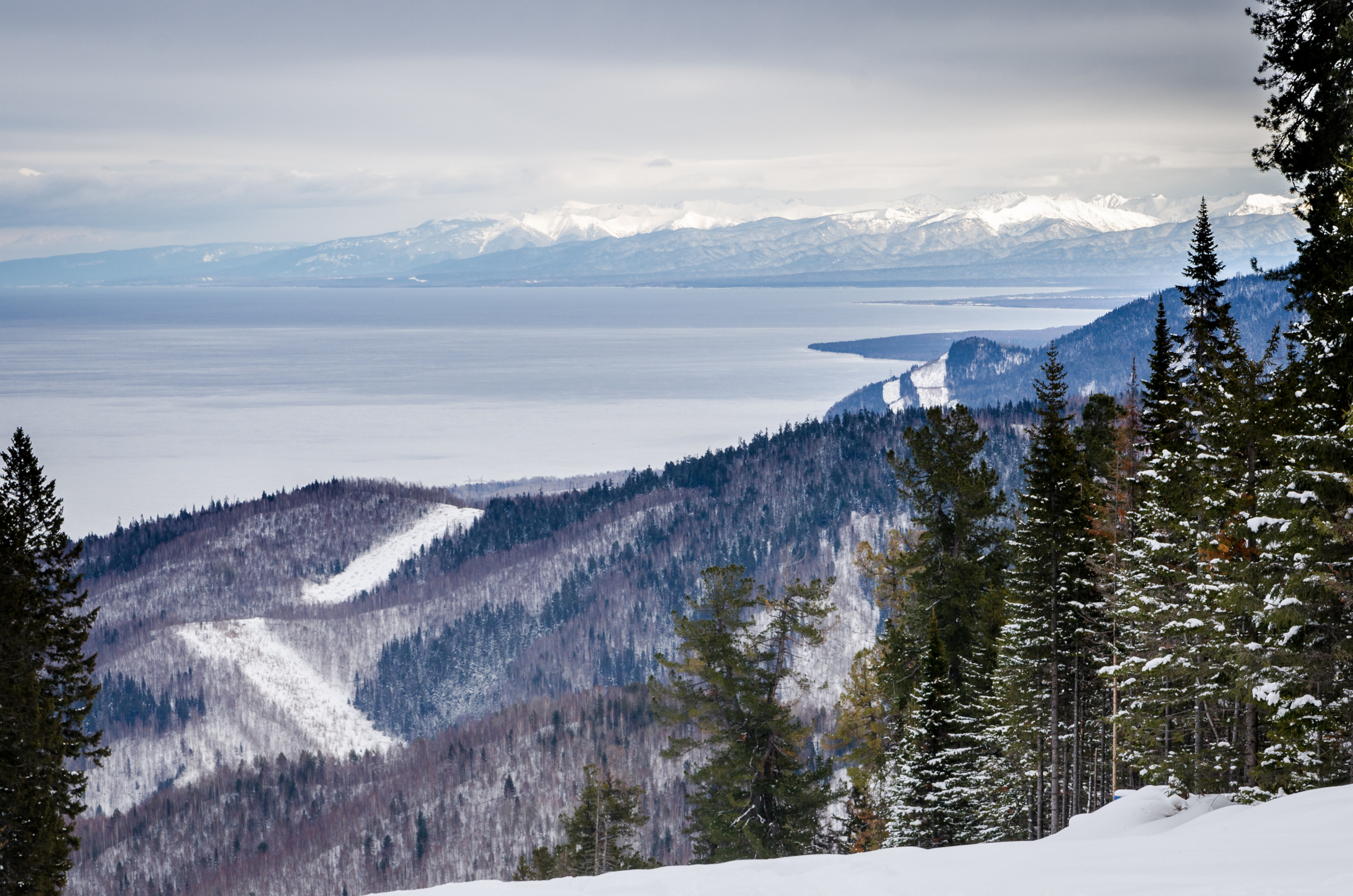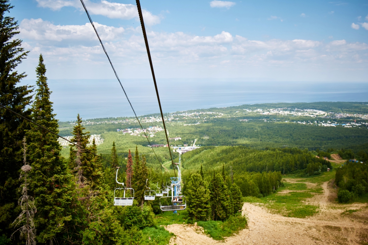 12:00乘坐缆车(约15分钟)可到达海拔900米的观光平台,整个贝加尔湖的1/8全景尽收眼底。可进行选景拍照,也可使用投币望远镜更加清晰的对周边美景观望。