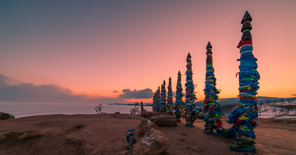 早餐后,前往奥利洪岛(乘车5小时左右),沿途我们可以欣赏到一望无际的雪原,雾凇,以及被白雪覆盖的木屋。到达奥利洪岛前往宾馆休息后,在导游的带领下前往湖边参观萨满柱,萨满石,以及其他景点。
